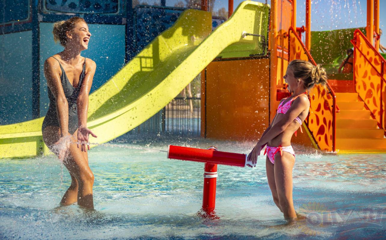 Na samo 150 m od hotela nalazi se uređena plaža s Plavom zastavom, prirodnim hladom i sadržajima za djecu. U sklopu resorta nalazi se i Aquamar obiteljski vodeni park s 5 bazena, toboganima i zonama za opuštanje.